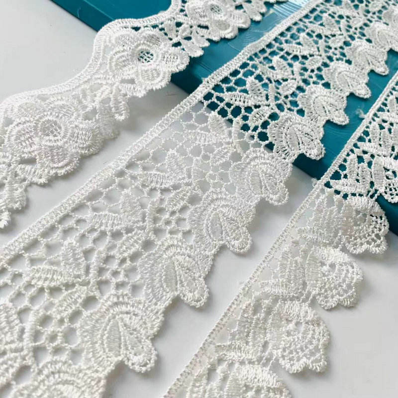 Květinová krajková obložení 100% polyesterová chemická krajka Vynikající květinový vzorec Chemická vyhloubená technika činí texturu světla, měkká a prodyšná. Je vhodný pro dekoraci v oděvu, domácí textilu, svatební šaty atd., Nabízející různé barvy a šířky, z nichž si můžete vybrat. Je omyvatelný a odolný a podporuje přizpůsobený design.