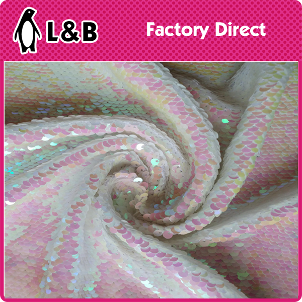 Vysoce kvalitní módní polyesterová flitrová tkanina s vysoce kvalitní polyesterovou základnou a lesklou dekorací sekin je lehké v textuře a elastické. Je vhodný pro výrobu luxusních předmětů, jako jsou večerní šaty, jevištní kostýmy a módní kabelky. Nabízí celou řadu barevných možností, jak uspokojit potřeby špičkového přizpůsobení.