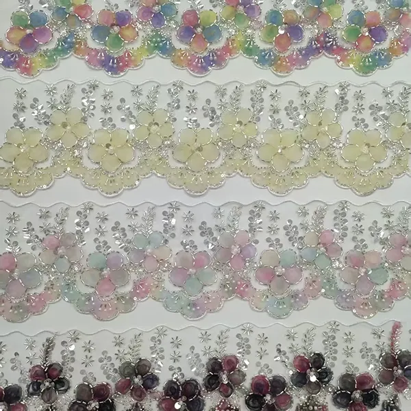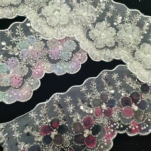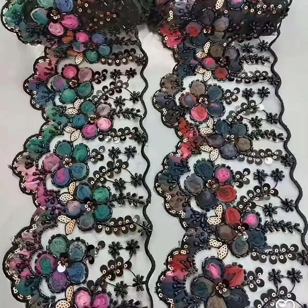 | Zboží | Vícebarevná vyšívaná krajka s 3D síťovinou Květiny Stuha Korálková trubička Vyšívací krajka s čárovým kódem | ||